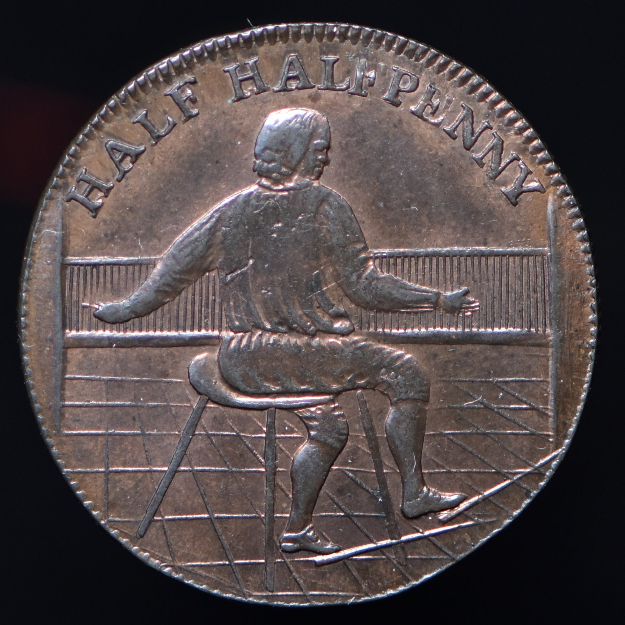 One of the harder to find half halfpenny tokens. And this one a near gem that is lovely in hand.