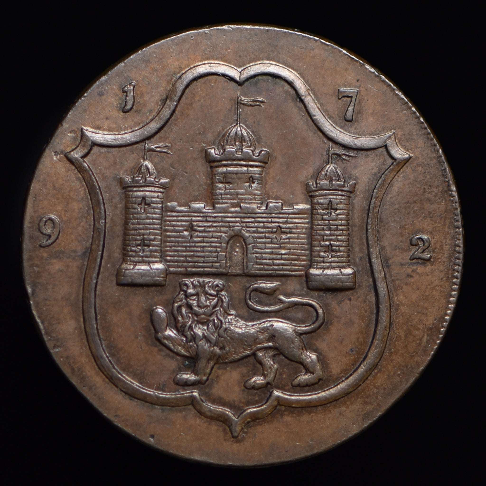 Obv: Arms of Norwich, 1792 around arms. Rev: Man working in a loom. Edge: IOHN HARVEY OF NORWICH . X X X X .