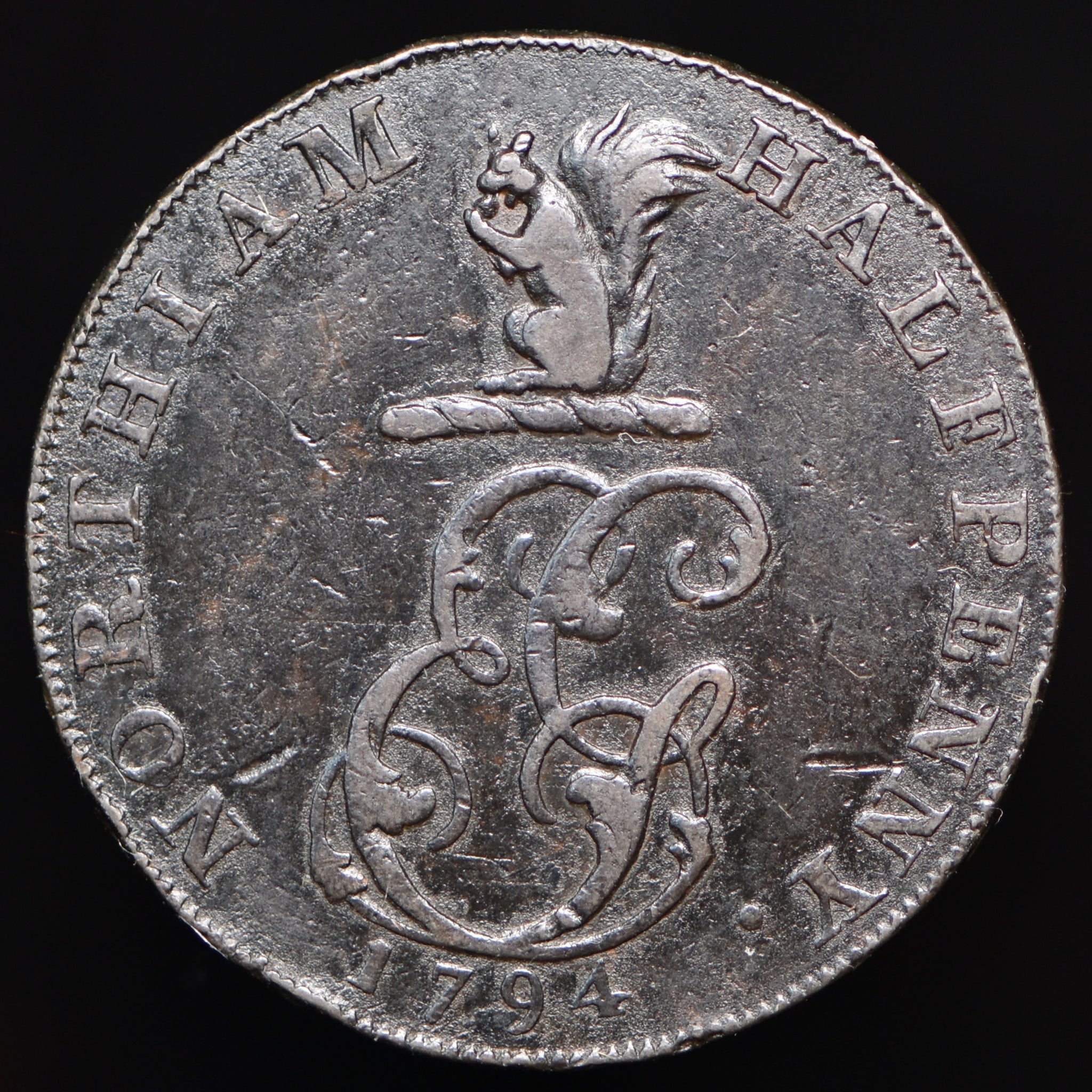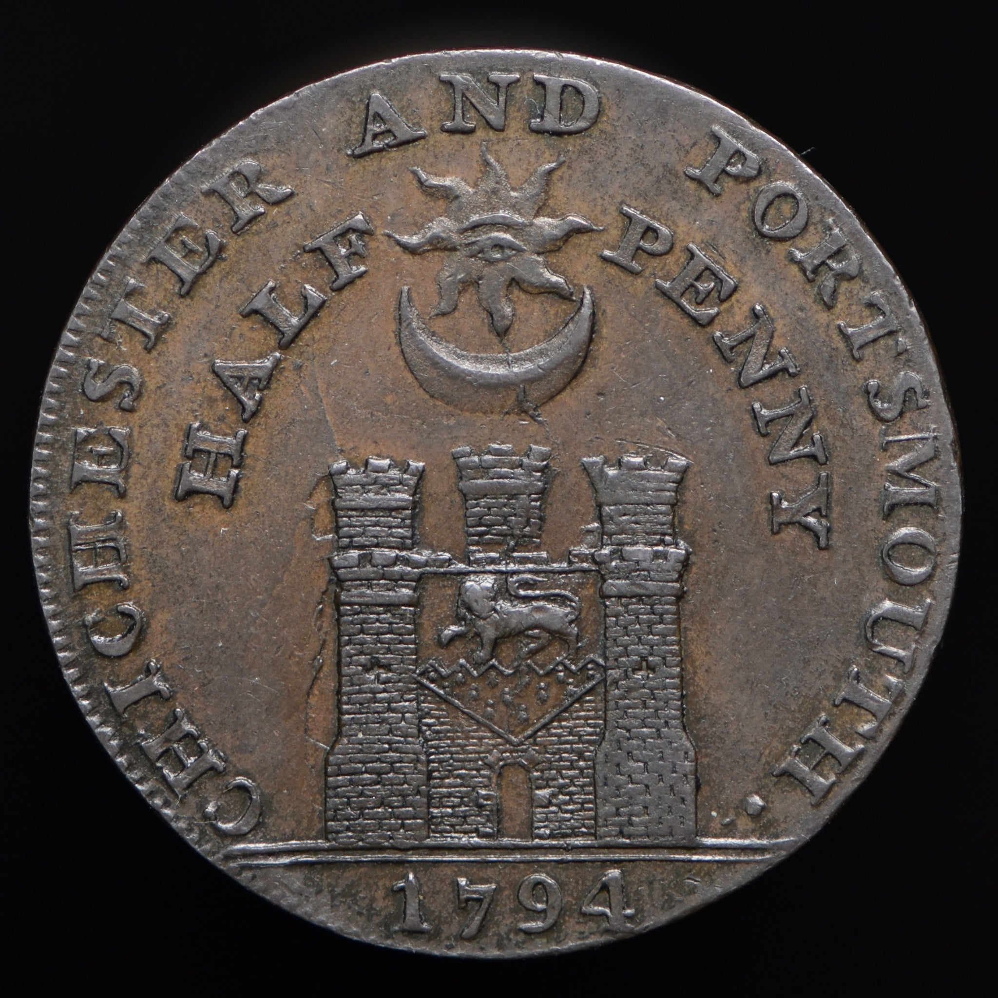 Trade tokens struck for Thomas Chaldecott (19), a silversmith in Chichester; Elias Gilbert (35), a farmer, blacksmith, and grocer; and Richard Maplesden (41), a grocer and draper in Winchelsea. Attractive group!
